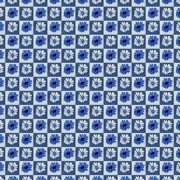 Starting with my Indigo Daisy flower watercolor painting, and bringing in the white daisy from the black and white checkered pattern, a classic blues floral pattern was created in Photoshop.