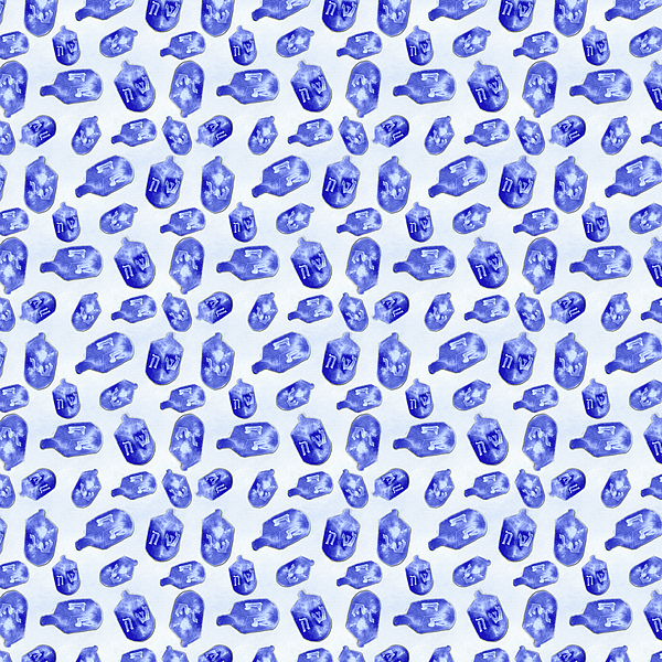 Celebrate the Festival of Lights, Hanukkah, with this blue dreidels pattern on frosty white. Motifs were handpainted by Elizabeth of LZBTH Creative.... more