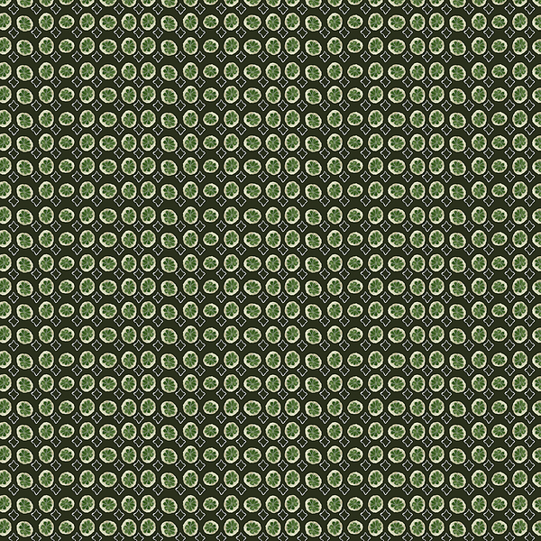 Foulard? Small scale, geometric shapes, in a repeat block pattern. This one is the watercolor painted round yew seedpod and diamond shaped silver gray needlework, originally on watercolor paper. Motifs brought into Photoshop to be arranged into a pattern. Set on a dark olive background.