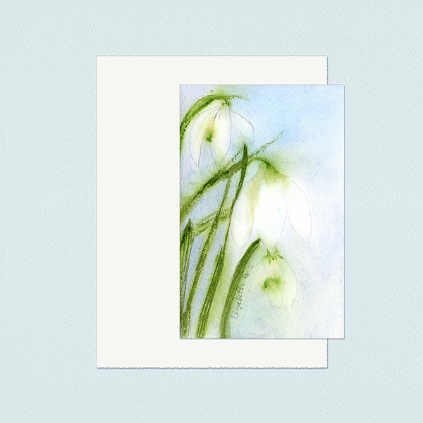 Jubilee, Snowdrops, January Birth Flower original watercolor brought into Photoshop and a simple paper collage elements were added to the small 4 x 6... more